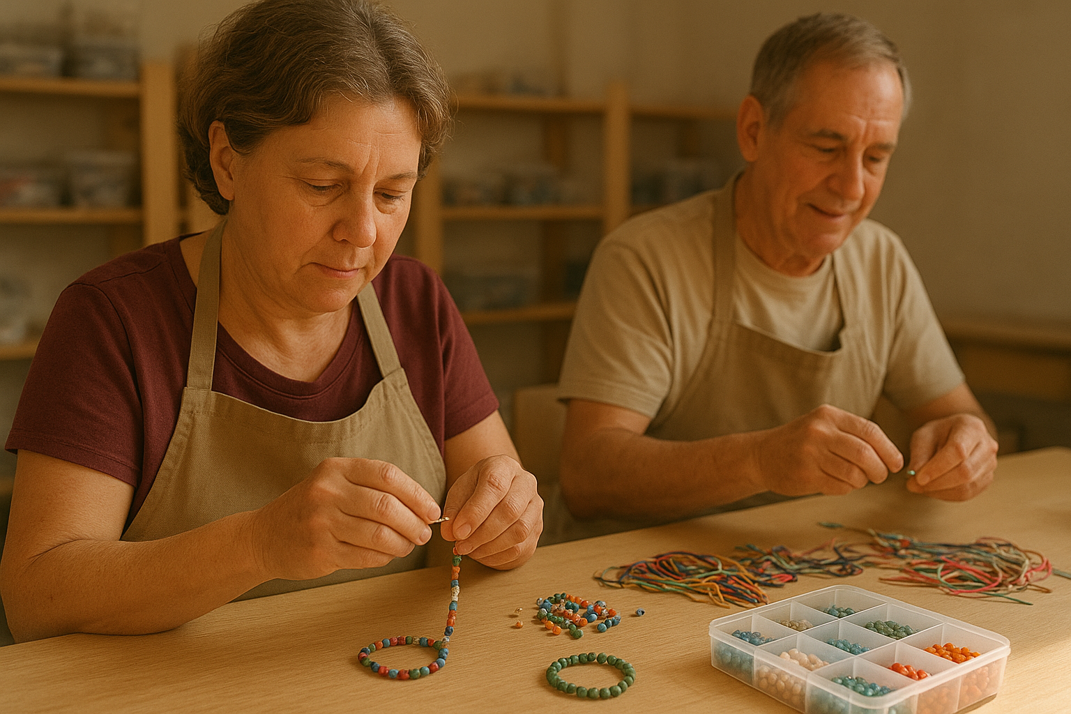Naše bižuterie a vlasové doplňky procházejí rukama šikovných lidí se zdravotním postižením, kteří pracují v naší chráněné dílně. Každý náramek, čelenka nebo gumička, kterou si koupíte, pomáhá vytvářet pracovní místa a dává těmto lidem šanci být součástí smysluplné práce.